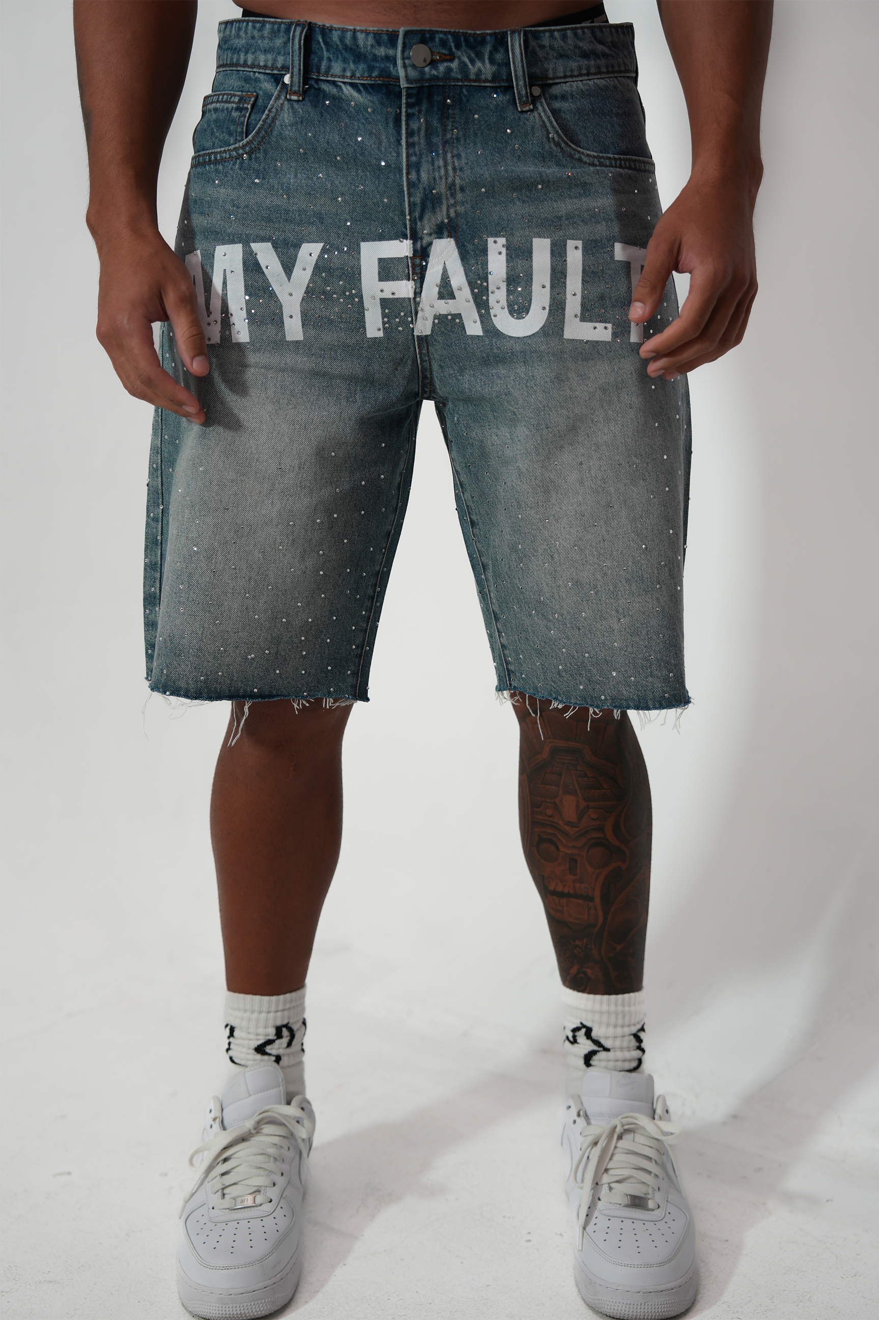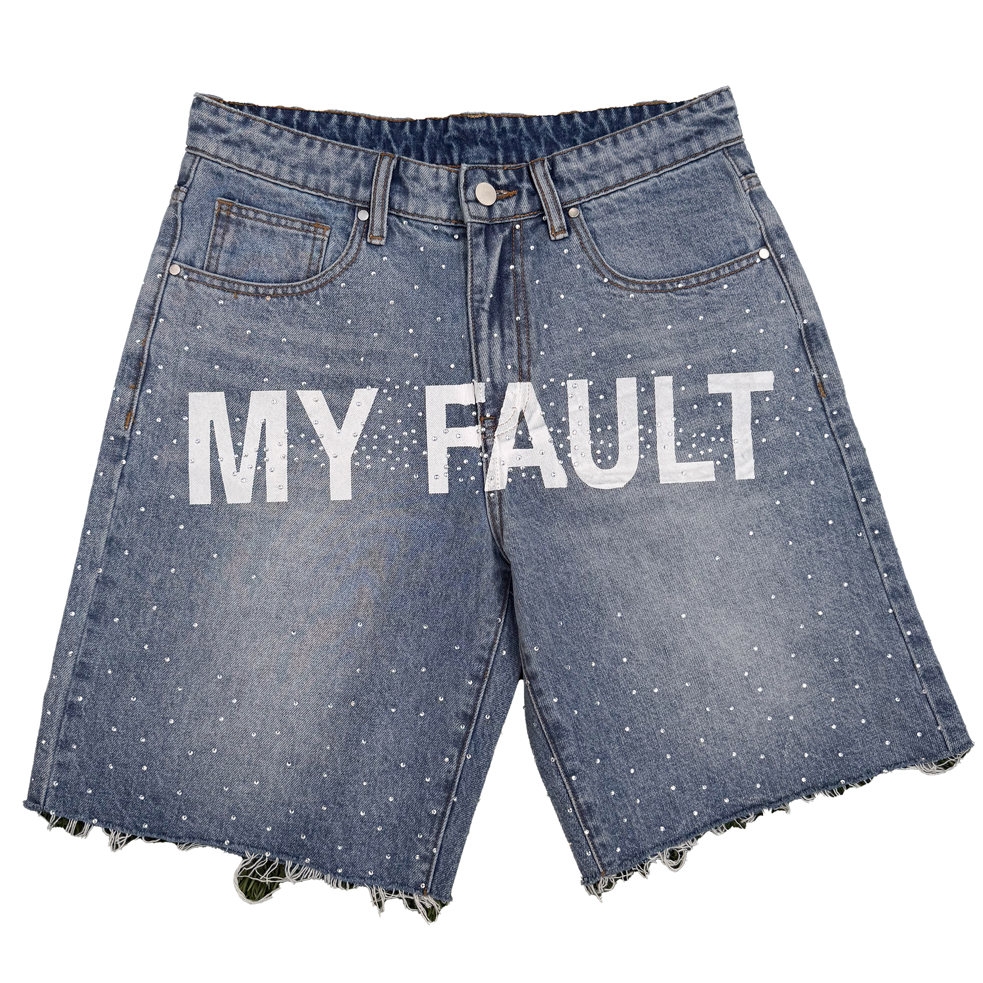 MFLA JORTS combine classic distressed denim with a touch of sparkle, featuring carefully placed rhinestones that elevate the rugged look. Expertly crafted for durability and style, these jorts offer a unique blend of edgy and glamorous, perfect for making a statement while staying comfortable in warm weather.